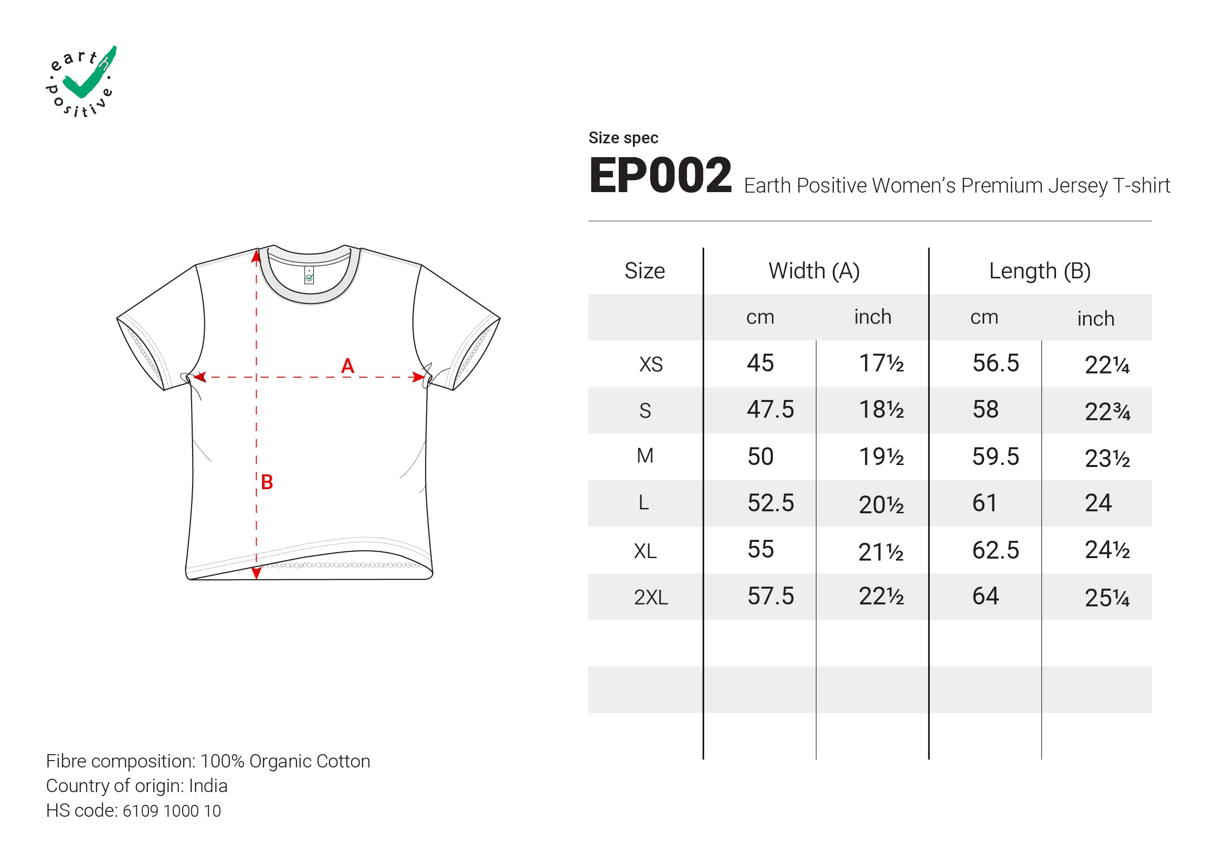 Introducing the Earth Positive Women's Premium Jersey T-shirt, an update to the EP02 Classic Unisex T-Shirt, crafted for those who value comfort and sustainability. This 100% organic cotton tee now features a heavier 185gsm fabric, providing a premium feel and enhanced durability.