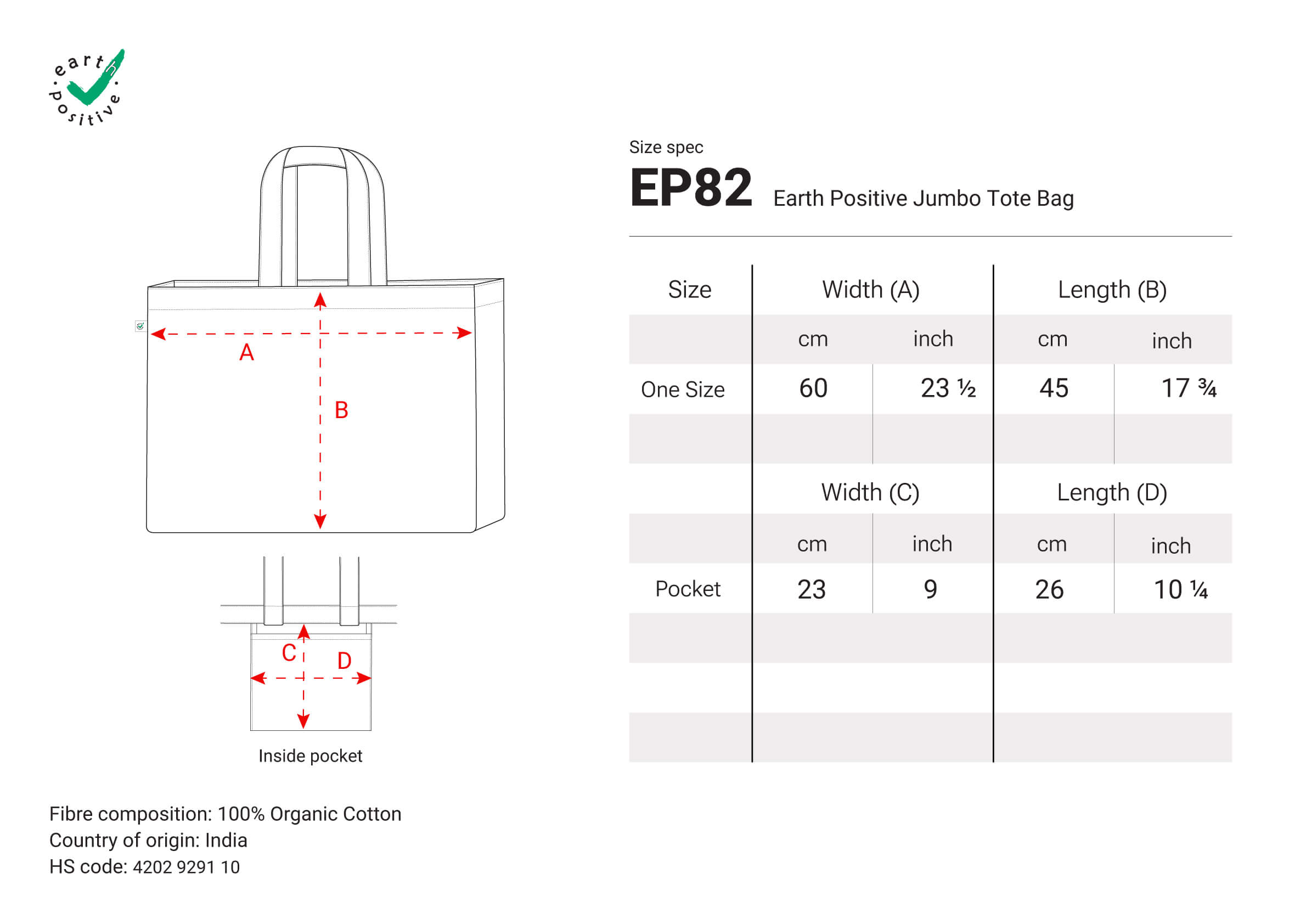 Designed for larger loads, the EP82 Jumbo Tote delivers maximum capacity in a clean, oversized silhouette — ideal for markets, events, and merchandise bundles. Generously proportioned yet streamlined in design, it offers a practical solution for high-volume carrying needs.