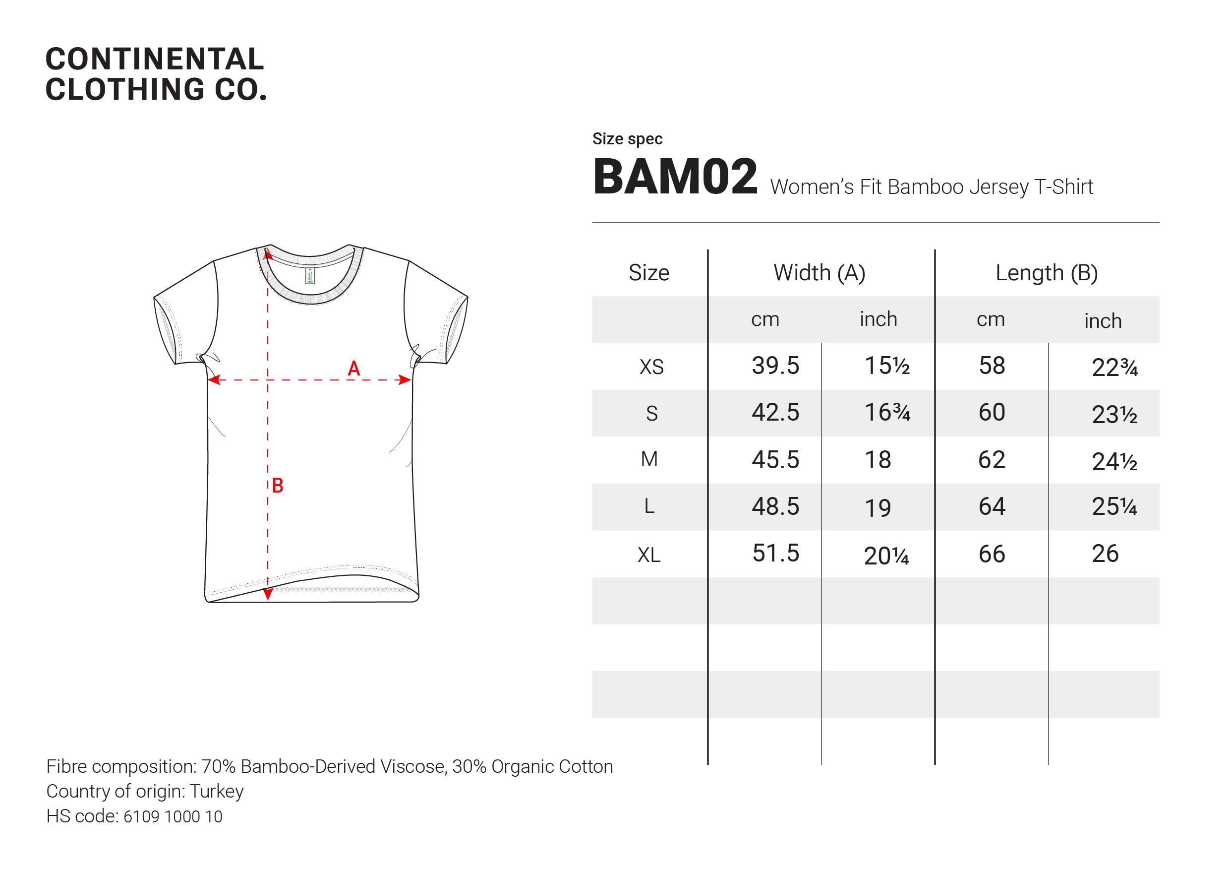 The Women’s Bamboo Relaxed-Fit T-Shirt is produced from a premium 180 gsm fabric blend of 70% bamboo viscose and 30% organic cotton.