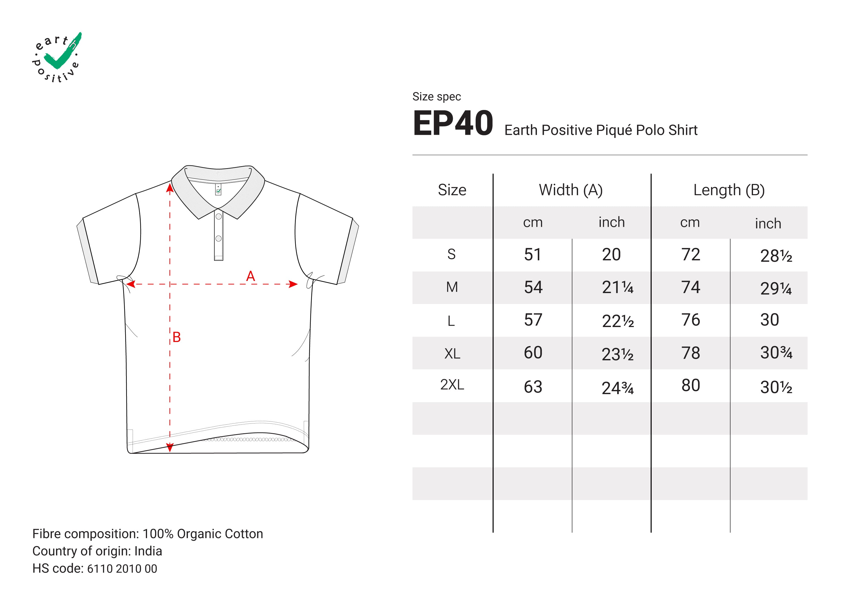 EP40 Earth Positive Piqué Polo Shirt is a sophisticated addition to any wardrobe. Crafted from 100% organic cotton piqué fabric, this polo offers a textured feel and classic appeal.