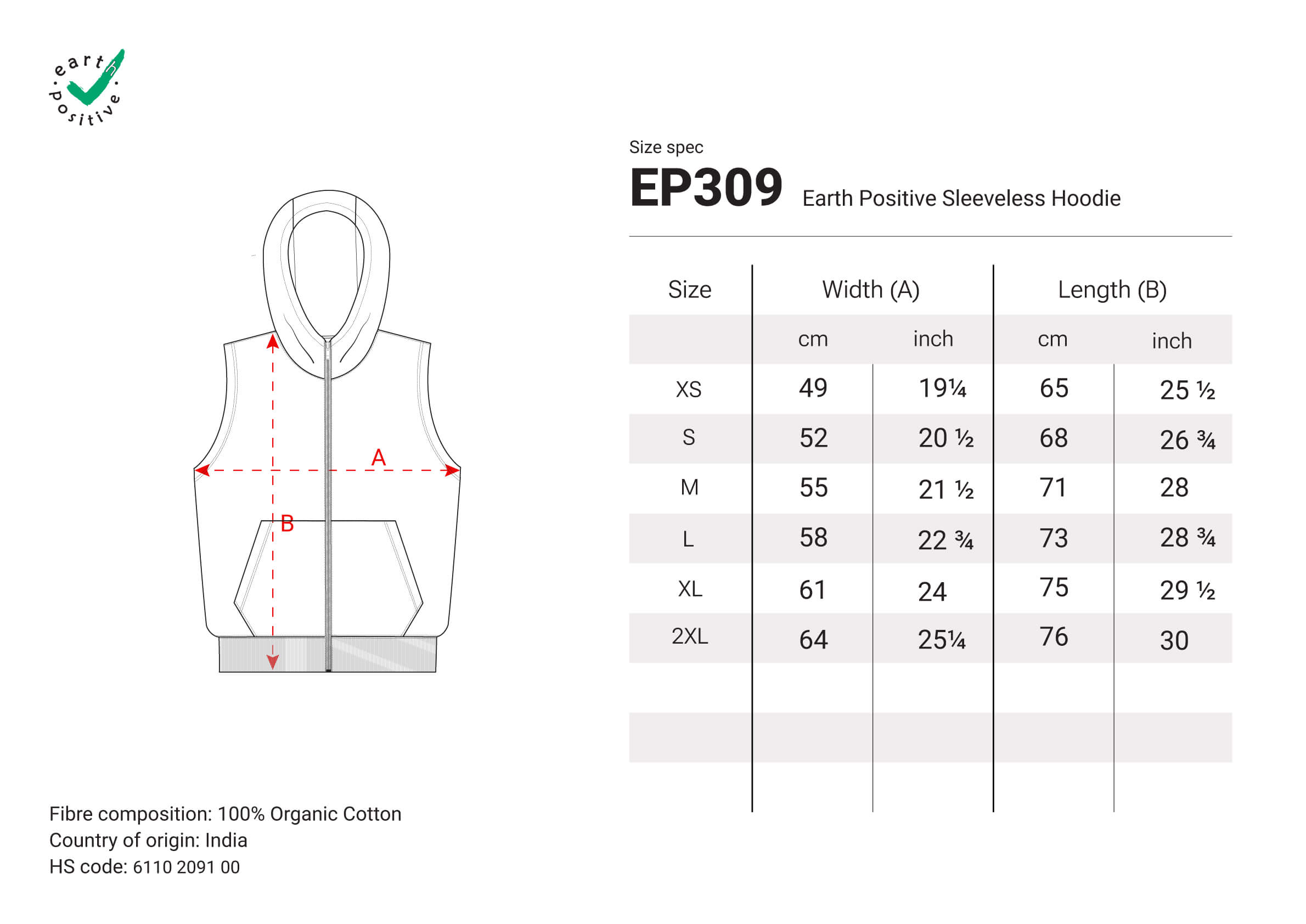 Earth Positive® Sleeveless Full Zip Hoodie