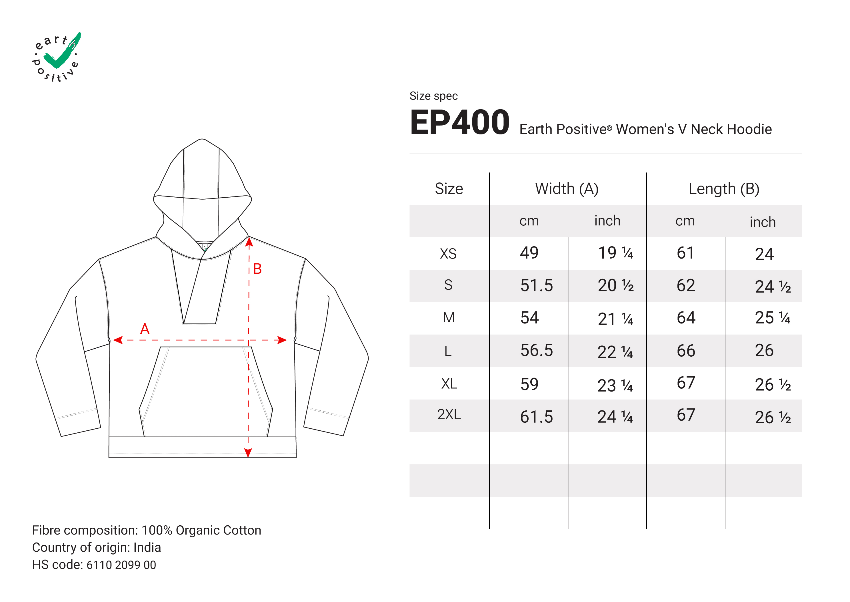 The EP400 introduces a feminine interpretation of casual comfort. This women’s V-neck hoodie features a flattering neckline and relaxed silhouette, crafted from substantial 300 gsm organic cotton fleece with a soft brushed finish.