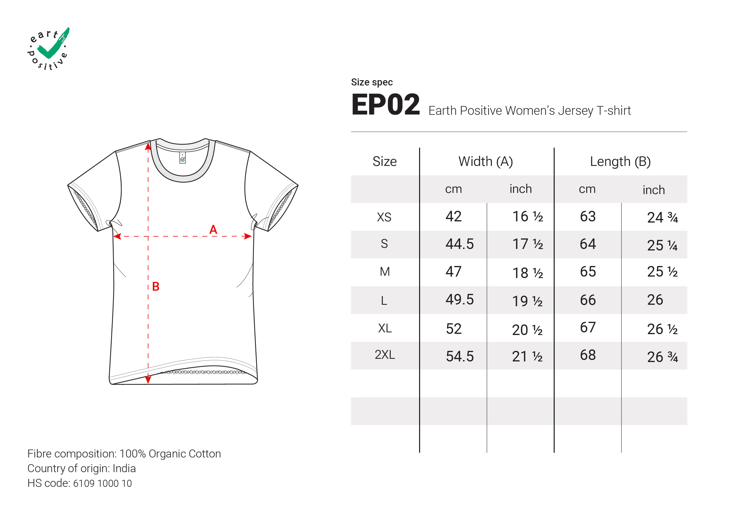 The EP02 Women’s Classic Jersey T-Shirt delivers effortless style with responsible design. Crafted from 100% organic cotton jersey, this women’s shaped tee combines everyday comfort with a clean, refined silhouette.