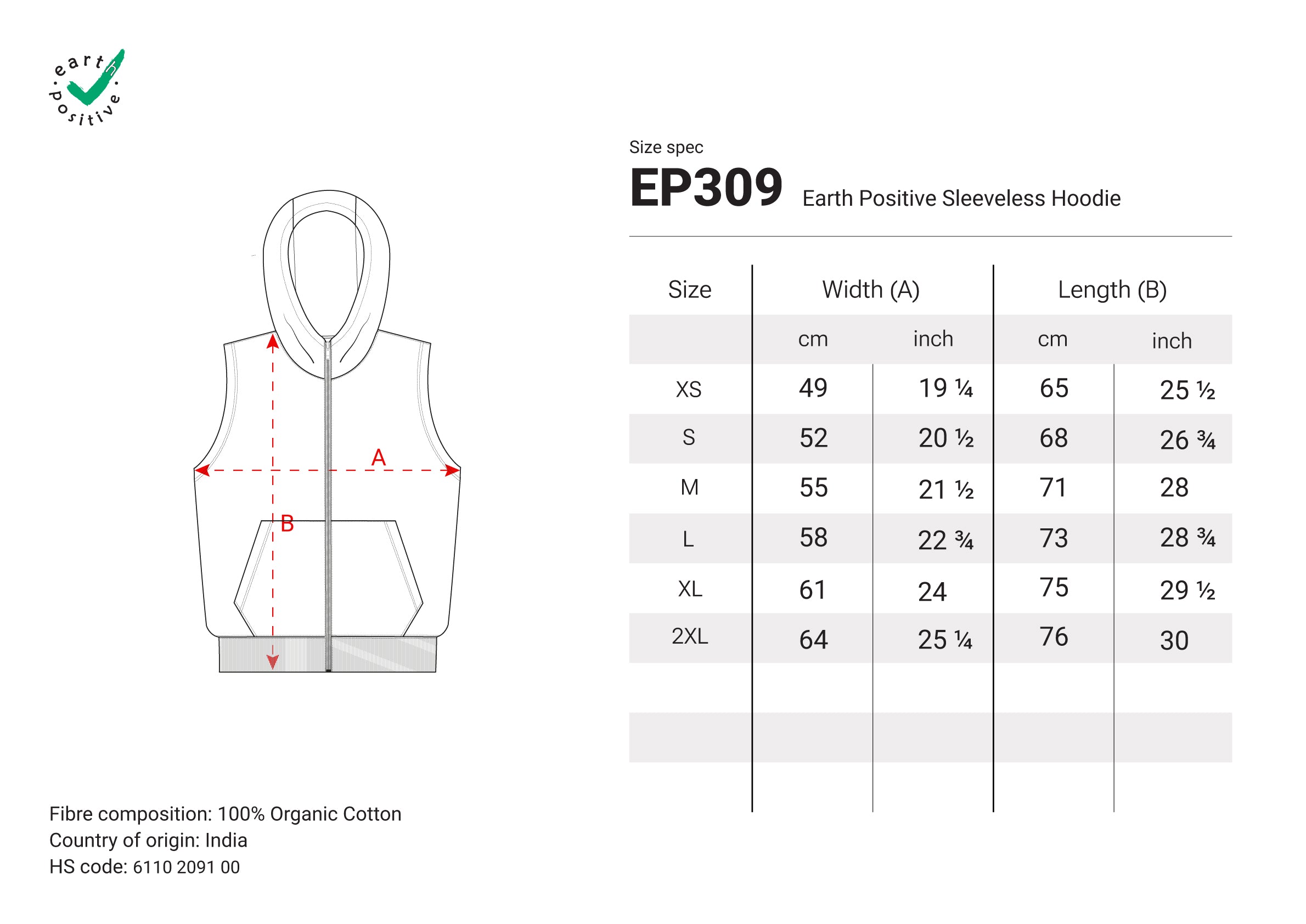 The EP309 is effortless and elevated. A sleeveless hoodie perfect for layering or warmer days. Made with premium GOTS-certified organic cotton, it offers all the softness of our Earth Positive fleece with a more streamlined, stylish silhouette. Lightweight, ethical, and made for merch with a difference.