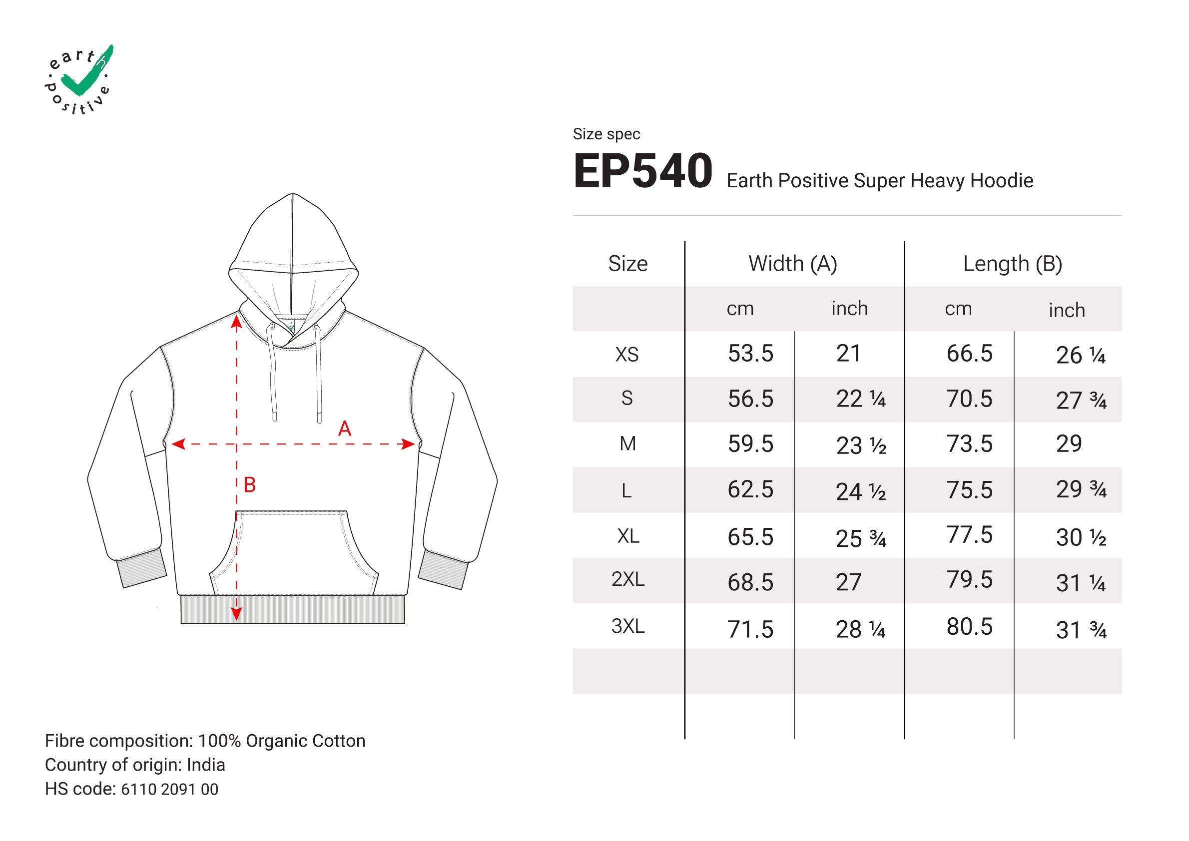 The EP540 is our heaviest hoodie yet - built for those who want unmatched quality, weight, and warmth. Crafted from 100% organic cotton and weighing in at a substantial 540gsm, this super heavy 3-ply loop back fleece hoodie delivers maximum comfort with zero compromise.